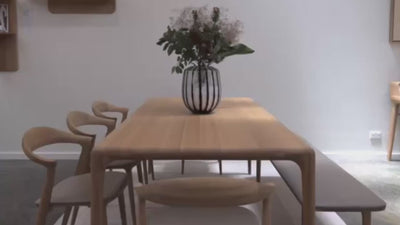 Minimal in it’s language, Latus Table embraces this vernacular to make a statement out of it’s highly regarded design details. The table’s organic shape, the arrowhead detail where the table top meets the legs and the curve of the underside at the heads of the table, each highlight the transition of timber face to end grain. Elegantly, tapered legs work in unison with the overall presence of this remarkable table that is elevated by a visually uncluttered design, crafted to a sense of proportion and balance. The Latus design collection includes a dining chair, coffee table, console, sideboard, desk and bed.